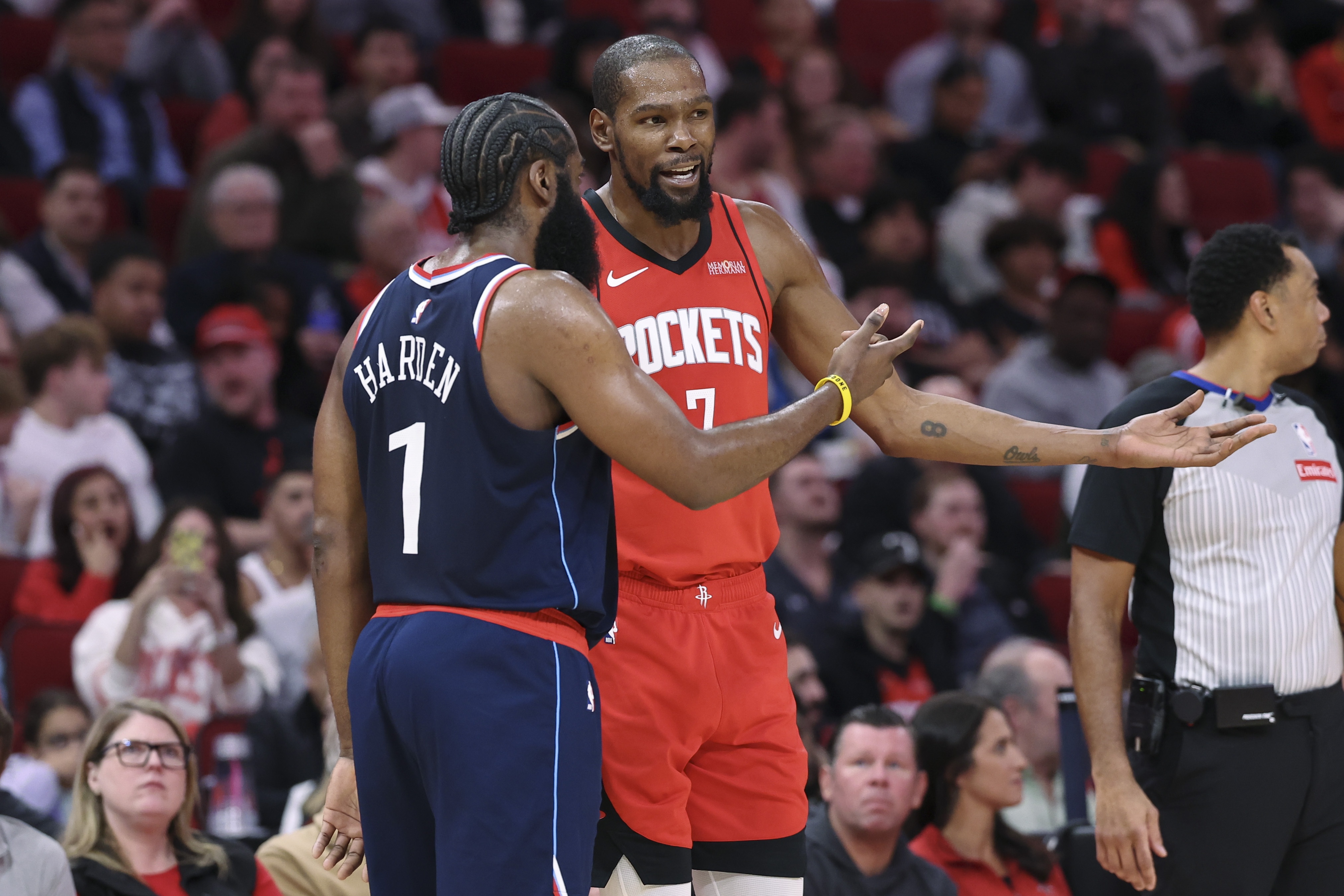 “我真心觉得这些家伙之所以还能打出这些数据,是因为他们仍然是球队的绝对核心,对吧?球权依然在他们手里。他们并没有沦为角色球员。凯文·杜兰特没有改变他的角色。科怀·伦纳德没有改变他的角色。保罗·乔治没有改变他的角色……还有詹姆斯·哈登。在NBA,只要球权在你手上,你就依然能打出华丽的数据。这并不是说你已经失去了比赛的能力。不,你手里还有球。你可能确实慢了一些,但你依然知道该怎么打比赛。”